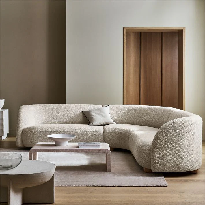 This corner sofa is expertly crafted using a combination of Red beech wood, Boucle fabric to ensure long-lasting comfort, structural integrity, and aesthetic appeal.