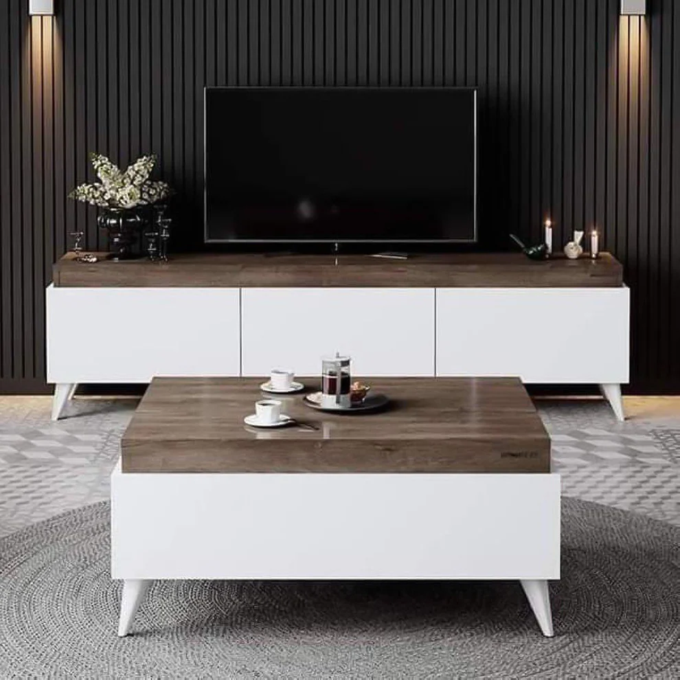 This TV table is designed for both function and elegance, crafted using MDF wood. Its robust build and sleek lines make it a perfect centerpiece for any modern living space.